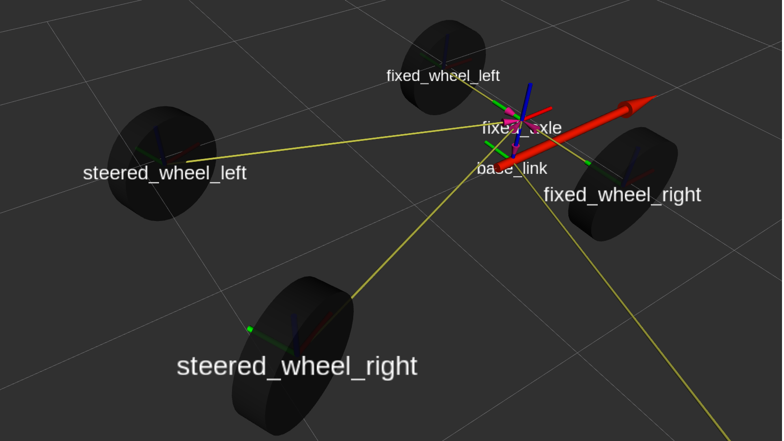 For the RViz visualization, vehicle_dynamics_sim generates the URDF programmatically from ROS parameters. Change wheel_base: 2.7 in your YAML and the visualization updates automatically. No duplicate configuration, no sync issues, no XML wrestling.